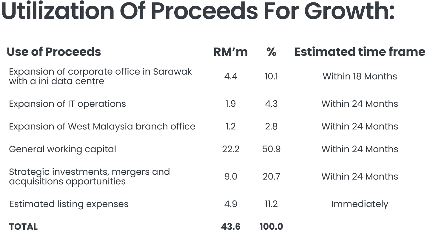 In anticipation of business growth, the Company plans to relocate to a larger corporate office in Sarawak. The new facility will provide a larger workspace to accommodate the expanded workforce and include upgraded IT facilities, including the mini data centre.