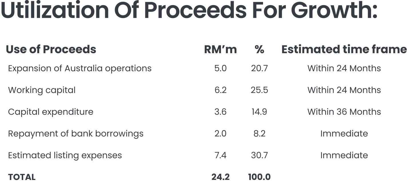To expand sales to customers in Poland, the group plans to appoint a representative in the country and allocate additional working capital to purchase plastic resin to manufacture plastic powder targeted for customers in Poland. For FYE 2022, FYE 2023, and FYE 2024, Poland accounted for 5.8%, 3.5%, and 3.6% of its total revenue, respectively. In order to expand sales to customers in Poland, the group intends to allocate additional working capital of approximately RM4.5 million to purchase plastic resin to manufacture plastic powder targeted for customers in Poland.