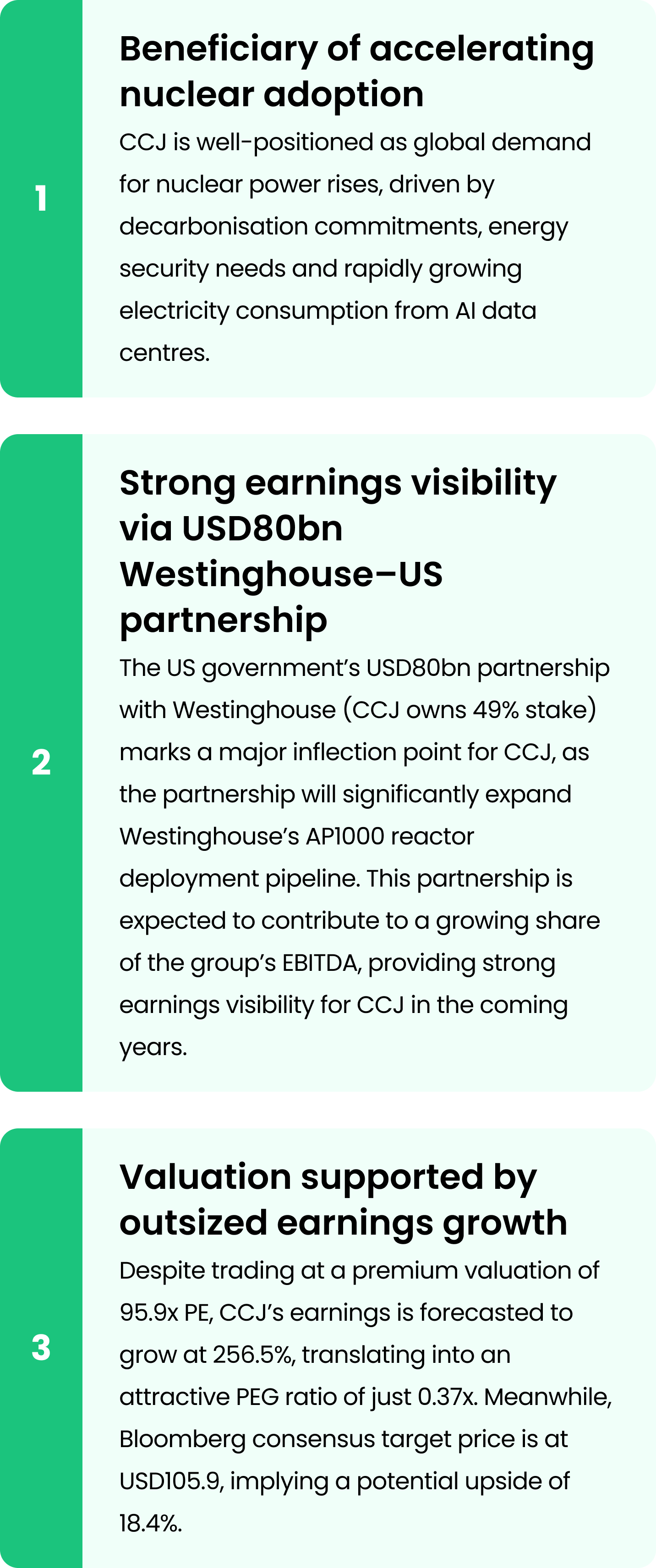 (US) Cameco Corporation - Positioned For Nuclear Energy Upcycle (US) Cameco Corporation - Positioned For Nuclear Energy Upcycle M+ Research December 04, 2025 1 min read Share on X/Twitter Share on Facebook Share on LinkedIn Share on Pinterest Email Copy Link On this page BUY NOWCCJ provides uranium for the generation of electricity.. BUY NOW